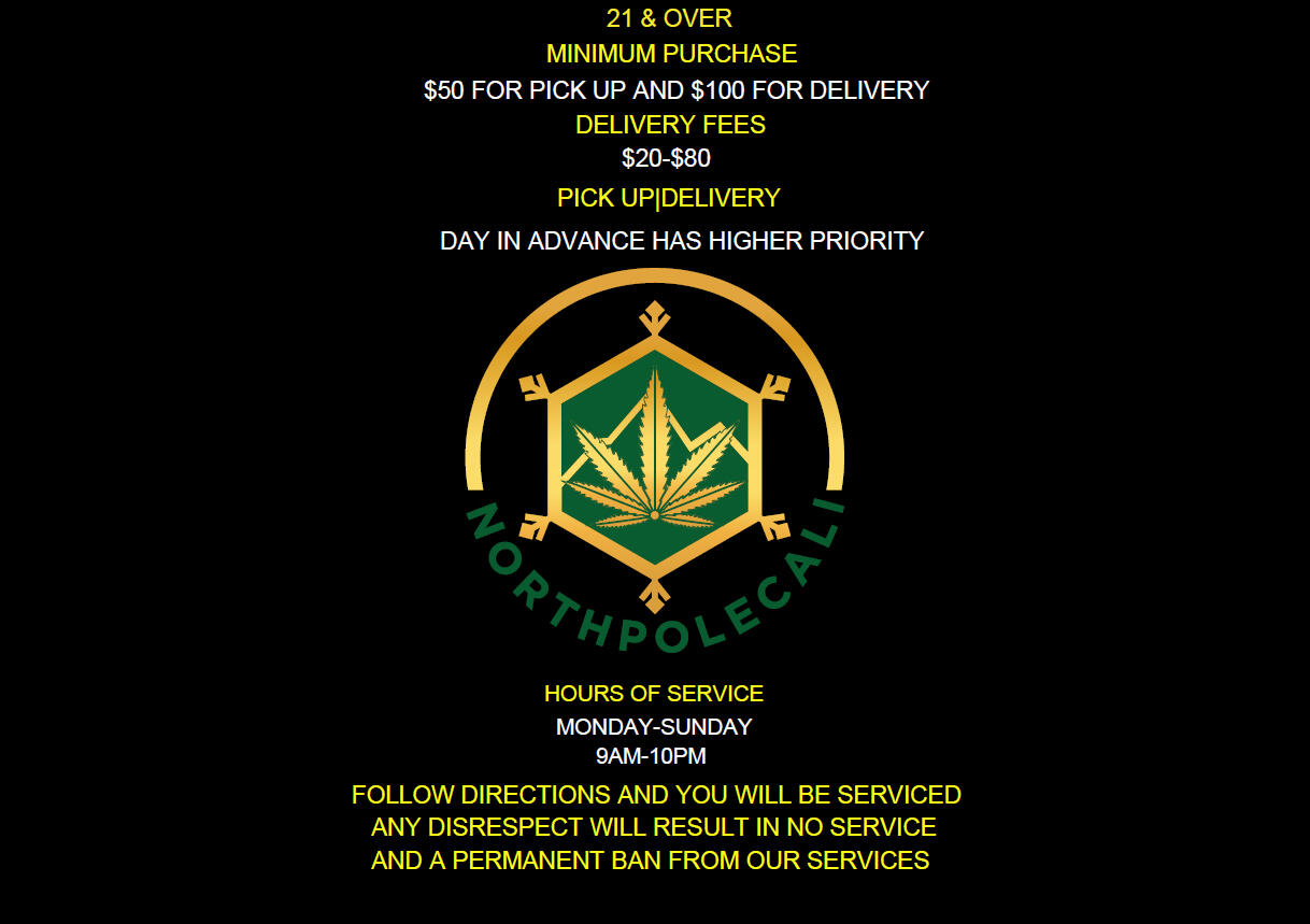 At NORTHPOLECALI, our mission is to provide convenient, reliable, and high-quality same-day marijuana delivery to the residents of Chicago and its surrounding areas. We believe that everyone should have access to the marijuana products they need without having to compromise on quality or service. Our team is committed to sourcing only the finest products from trusted local growers and manufacturers and delivering them to our customers with fast, discreet, and friendly service. We strive to make NorthPoleCali the preferred choice for marijuana delivery in Chicago and the surrounding areas and to provide our customers with an exceptional and memorable experience every time.
